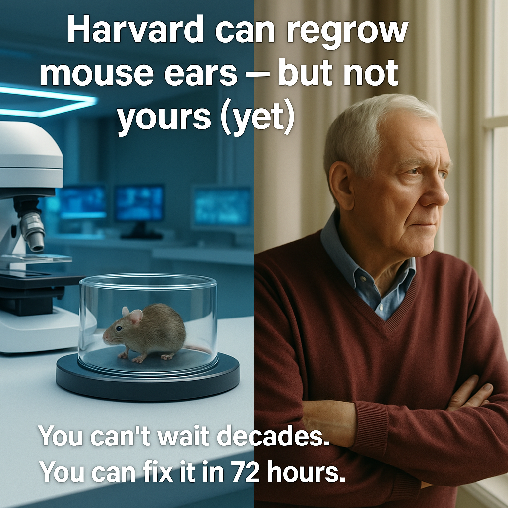 Maybe. Someday. Harvard researchers got mice to regrow some ear cells in 2023 using gene therapy. Exciting stuff. It's also decades away from helping YOU. If it ever does. Gene therapy for humans? We're talking 20-30 years of testing. Minimum. You want to spend the next 20 years missing your granddaughter's graduation speech? Your son's wedding toast? The sound of your wife's laugh? I didn't think so.