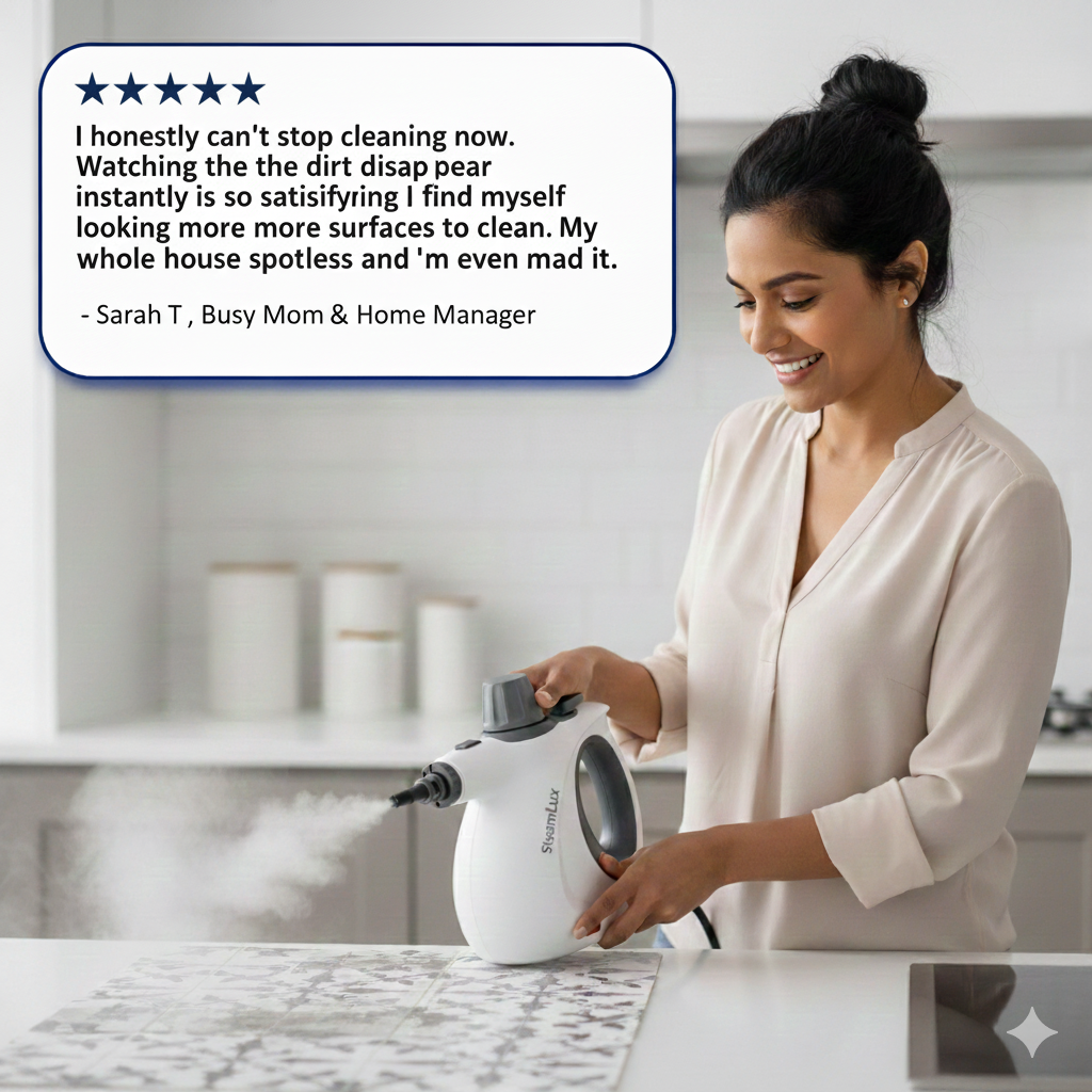 • "This made cleaning fun. Seriously. I used to dread it. Now I actually look forward to using SteamLux because the results are instant and perfect. There's something addictive about pressing the button and watching years of grime just vanish. My kids even asked if they could help clean because it looks so cool."
