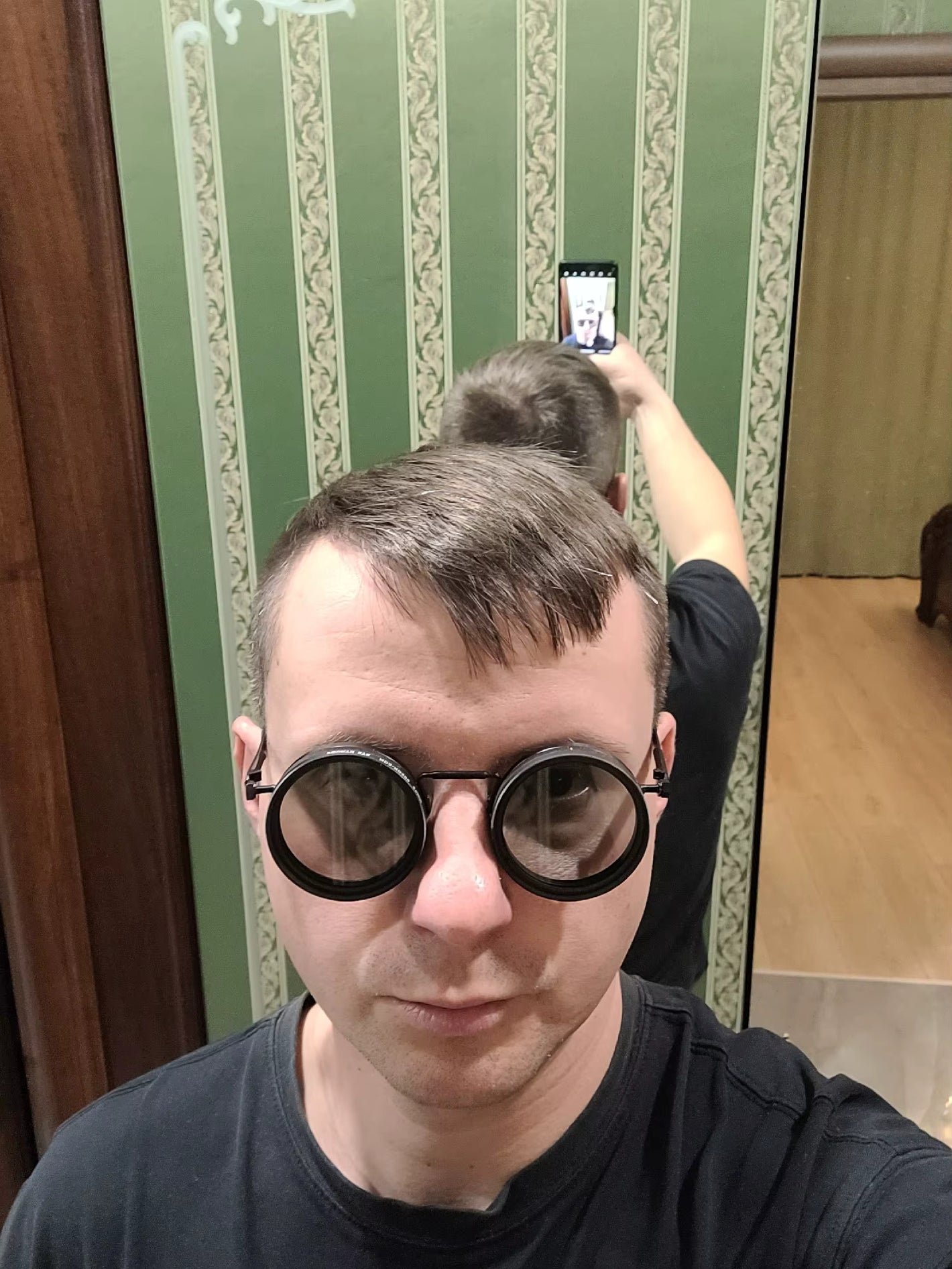 The glasses are priced right. The polarization adjustment is excellent and works. They can be easily handled against a shaking flashlight. I haven't tested them in sunlight yet; it's already on. However, eye protection must be taken into account. They are heavy, and their fragility must be taken into account. But I commend you for a solid product without defects. This is very nice. For example, I'll show a couple of photos without darkening or obscuring. The result is in the eyes.
