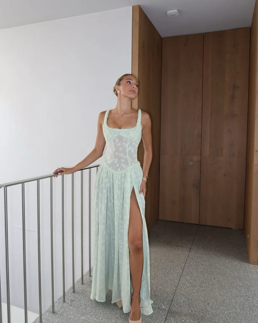 Exclusive - Dream Sight Lace Satin Maxi Dress